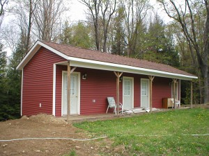 The upper floor houses the nurse’s station, an isolation room, three bedrooms for staff, 2.5 bathrooms and large group meeting/classroom. Registration occurs here. The lower level contains shower rooms/lavatories for boys and girls, a utility room, and a large tool storage room/workshop for maintenance.