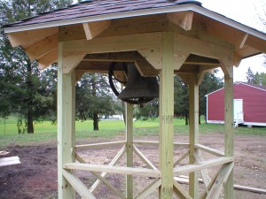 1855 Meneely Bell History: Meneely Bell cast in 1855 West Troy, New York. This was the bell for the Suspension Bridge Church of Christ which began in 1868, was incorporated in 1898 and changed its name to First Christian Church in 1948. That church planted the Pekin Church in the early 1870s from which came the Lasalle Church of Christ in Niagara Falls, NY. A group from that church purchased this land and formed Christian Heights Camp in 1947. The First Christian Church donated the bell to camp in 1999 when it merged with the Lewiston Baptist Church, becoming the United Baptist-Christian Church, Lewiston, New York.